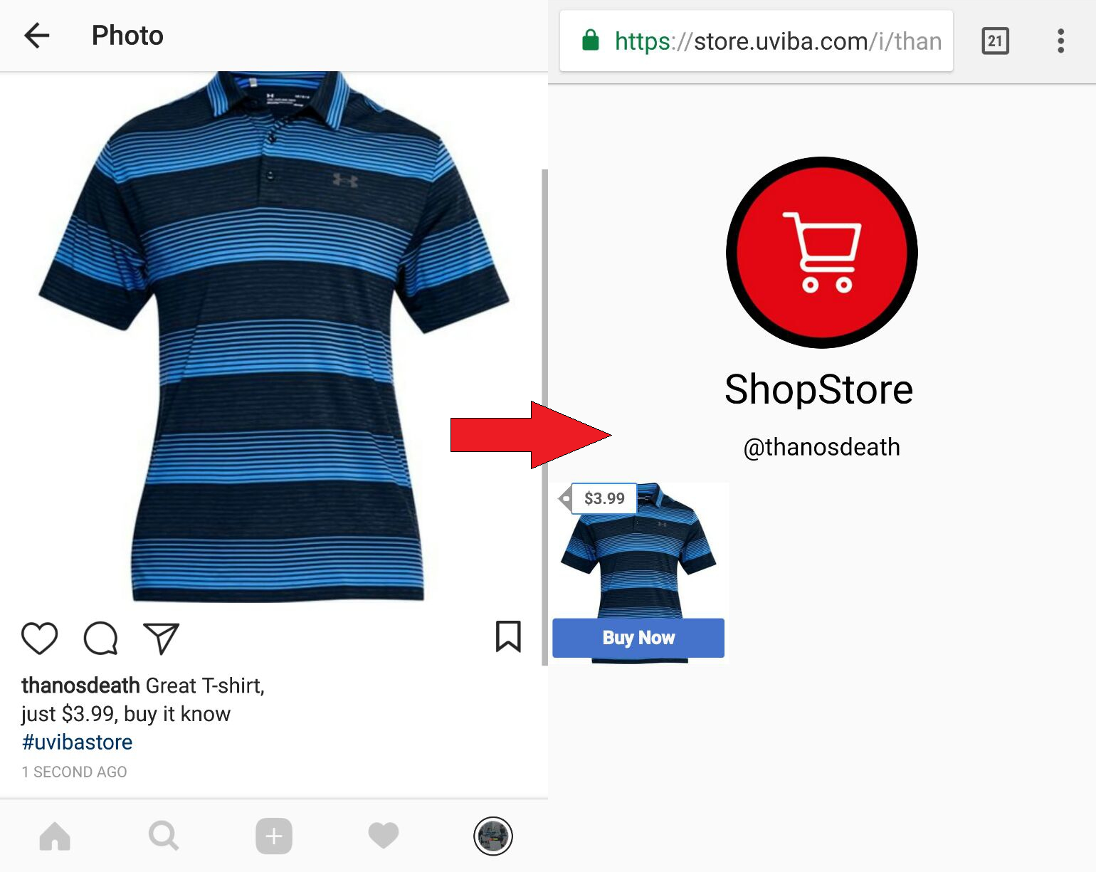 Share any product image with #uvibastore hashtag to add it to your store in uviba.
